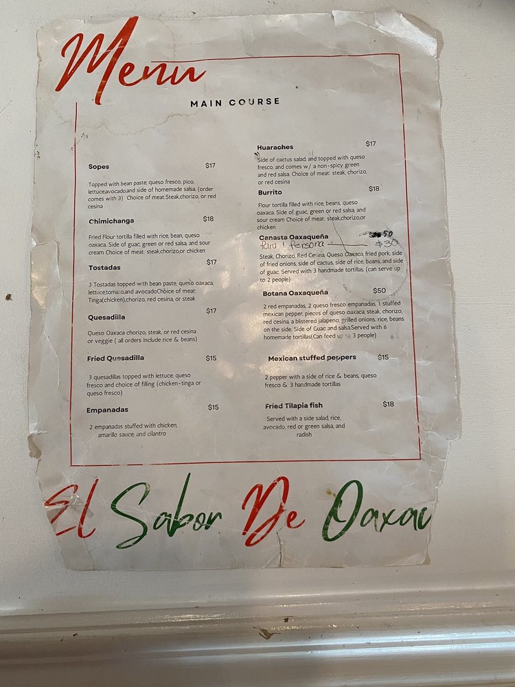 El Sabor de Oaxaca Menu